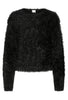 Fuzzy sweater with a plush, textured finish, featuring a classic crew neck and straight long sleeves. The cut is boxy and hip length for an effortlessly cool silhouette.