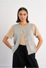 Sleeveless buttoned vest with a Round neckline and straight fit. Measures 55 cm from shoulder to hem in size small.