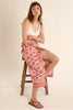Long printed wrap skirt with a straight fit and tie waist for an adjustable silhouette. Measures 84 cm at the side in size small.
