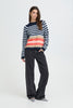 Striped sweater with a straight fit, soft textured finish, crew neckline and long sleeves. Features alternating horizontal stripes and ribbed edges.