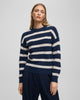 A timeless MSCH Copenhagen knit pullover with stripes. Crafted from high-quality wool and alpaca blend, this pullover offers exceptional warmth, softness and durability. Its cozy structure makes for a perfect companion for chilly days, ensuring you stay both warm and stylish. The slightly dropped shoulders and the rib knit cuffs provide a relaxed and easy-going vibe.The round neckline adds a touch of simplicity, making this pullover a highly versatile style. Pair it with an elegant shirt underneath for a formal outfit, a pair of relaxed fit